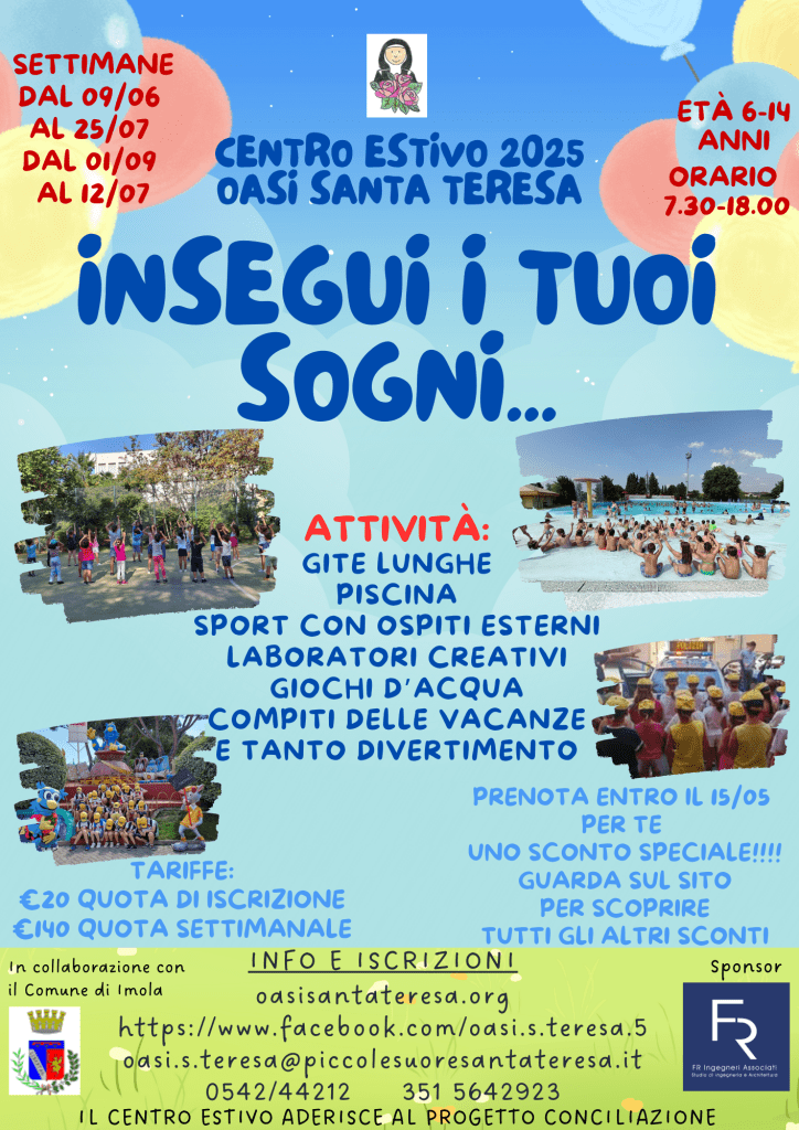 L’Oasi aderisce al “Progetto per la conciliazione vita-lavoro” a sostegno delle famiglie che avranno la necessità di utilizzare servizi estivi per bambini e ragazzi da 3 a 14 anni nel periodo di sospensione estiva delle attività scolastiche.