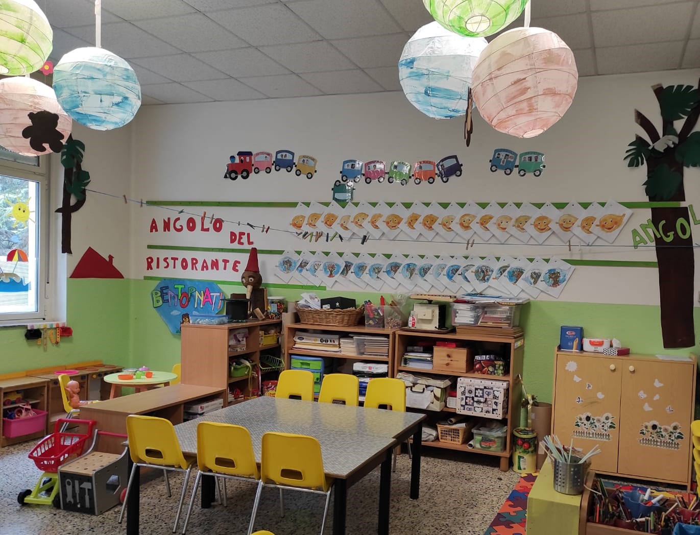 Nella nostra scuola ci sono quattro sezioni eterogene con due insegnanti ciascuna, organizzate in turni di compresenza.