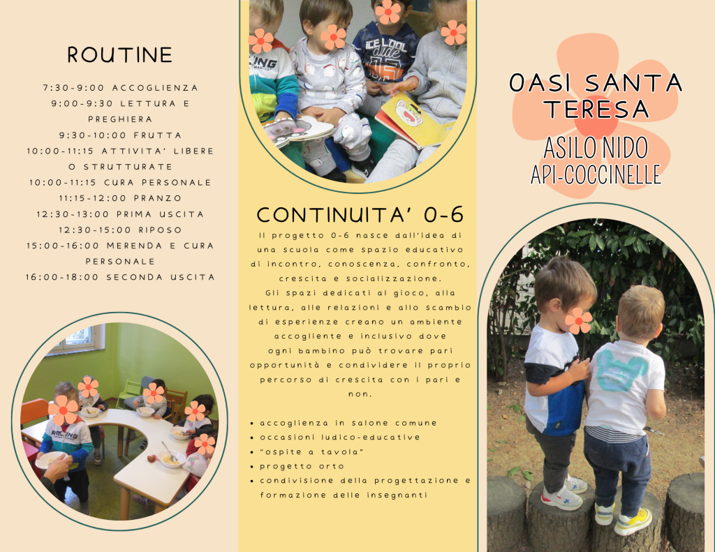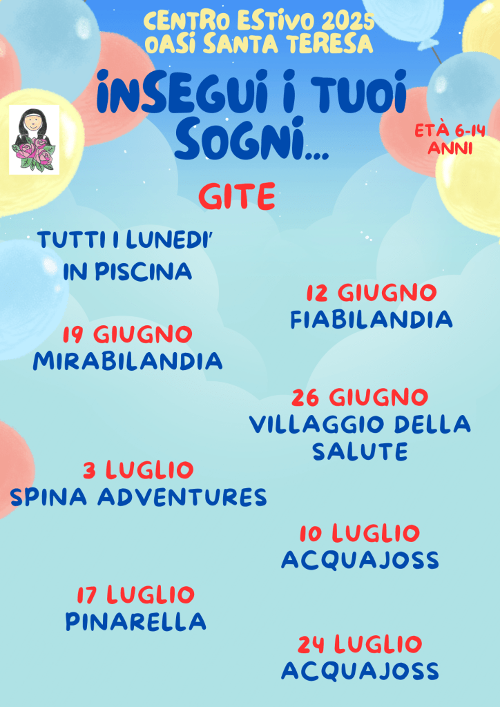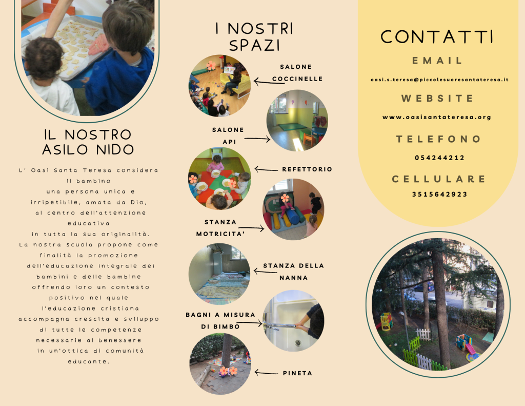 MODALITA’ E TEMPI: E’ possibile iscriversi alle singole settimane di frequenza. L’iscrizione è aperta anche per i bambini che non hanno frequentato la nostra Scuola dell’Infanzia. L’Oasi aderisce al “Progetto per la conciliazione vita-lavoro” a sostegno delle famiglie che avranno la necessità di utilizzare servizi estivi per bambini e ragazzi da 3 a 14 anni nel periodo di sospensione estiva delle attività scolastiche. Di seguito il link per le famiglie interessate a fare domanda: https://www.comune.imola.bo.it/scuola-formazione/servizi-scolastici/attivita-estive/campi-estivi-progetto-conciliazione-vita-lavoro-2024/richiesta-contributi-centri-estivi